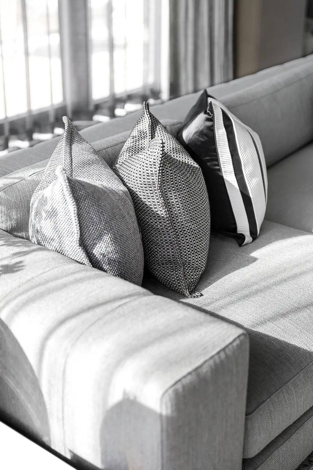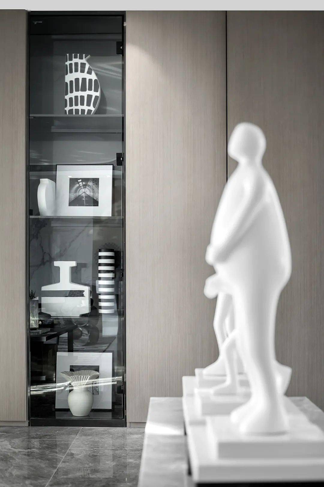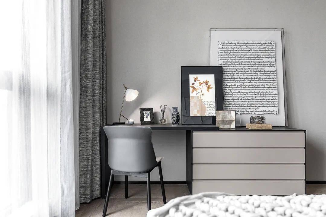 摒弃繁复的装饰,不同纯度的灰色加强了空间的层次感。 给时光以生命,每一个鲜活的日子,就是时间的痕迹。
