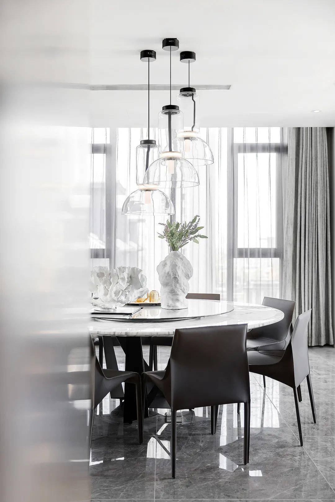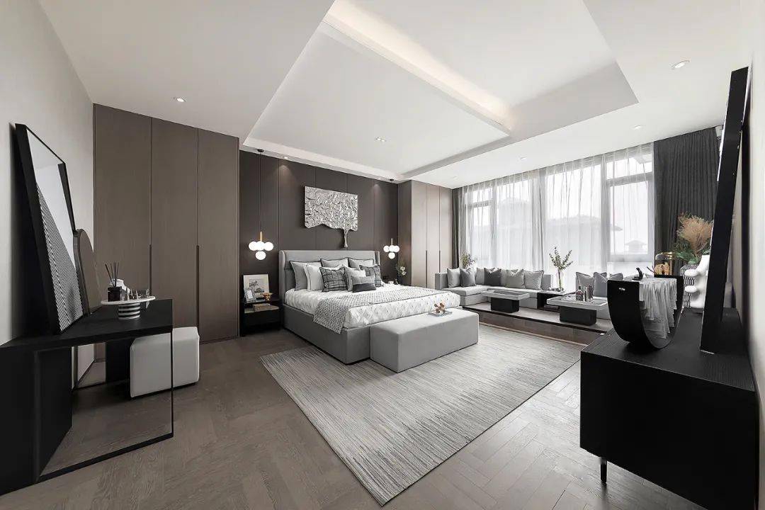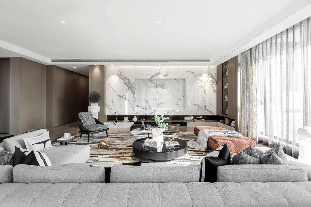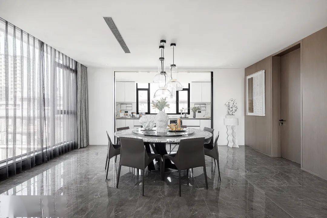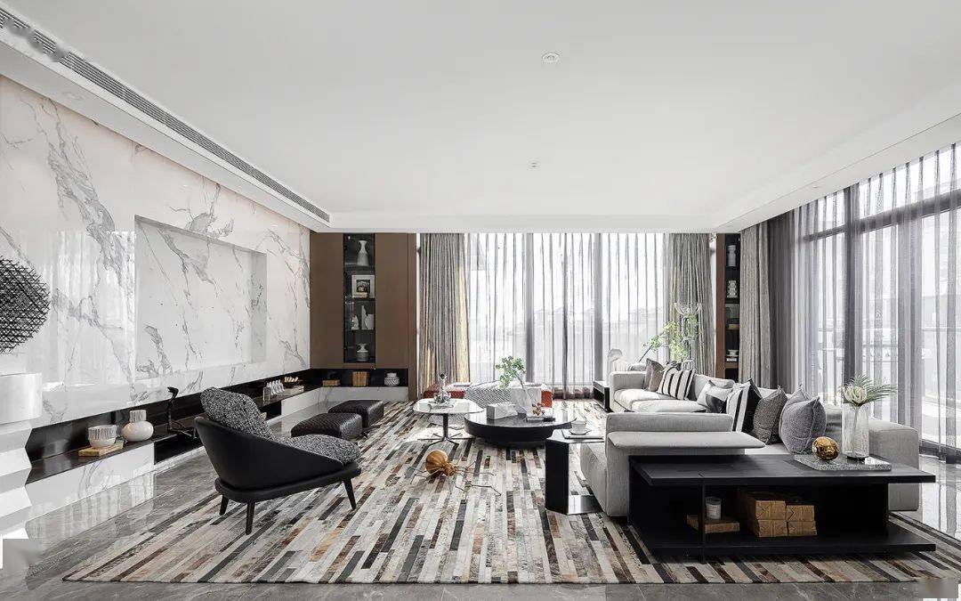 以 朴质高级灰的室内 格调为气质,通过完美的比例与极简的设计,展现一个安静、永恒的艺术之家。极简优雅家装大平层,是对那份 简约高雅和艺术气息的向往,将冷静美学运用到极致。